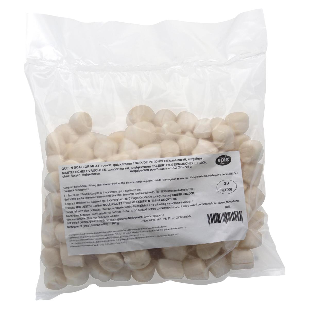 Scallops, roeless, United Kingdom, 60-80 pc/lb, 800g unit (carton 12 units)